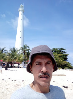 Narsis di depan Sekolah Laskar Pelangi |